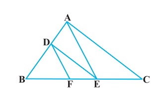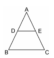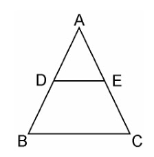 A line parallel to BC intersects AC at E as shown in above figure such that DE || BC.