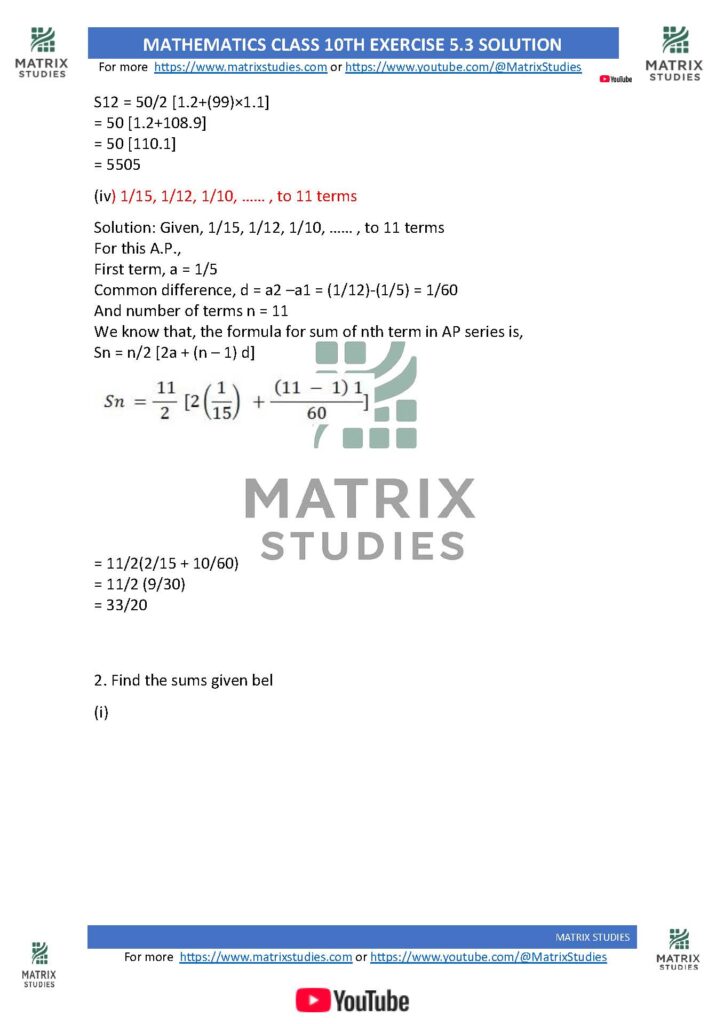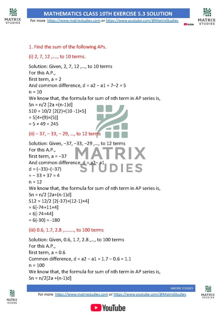 1. Find the sum of the following APs.